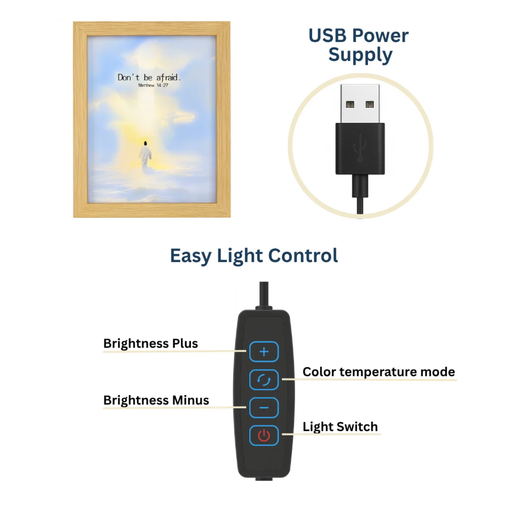Each lamp is made using a high-quality wooden picture frame with a built-in LED strip inside. The frame holds the design, while the integrated LED gently illuminates it from within, creating a soft, warm glow with variable intensity and tone.