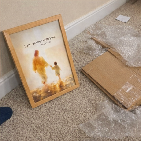 Our frames are 5.8 × 8.3 inches (14.7 × 21.1 cm) and are easy to place on walls, shelves, or bedside tables.